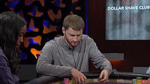 Berkey contra Bryn KenneyEn esta mano, Matt Berkey, muy corto de fichas en la ciega grande y con una mano media, paga la subida de Bryn Kenney. ¿Por qué no fué all-in o se tiró? Se lo preguntamos al protagonista. |
