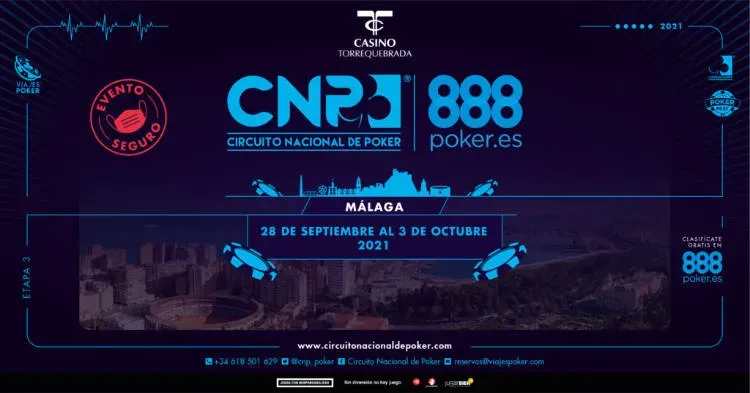 Tras el éxito del CNP 888 Madrid celebrado en Casino Gran Vía el pasado mes de Junio, los festivales de poker en vivo tienen continuidad en 888 Poker con el atractivo programa de clasificatorios diarios para el CNP 888 Malaga en Casino de Torrequebrada, unicado en el corazón de la Costa del Sol... ¡ en Benalmádena!