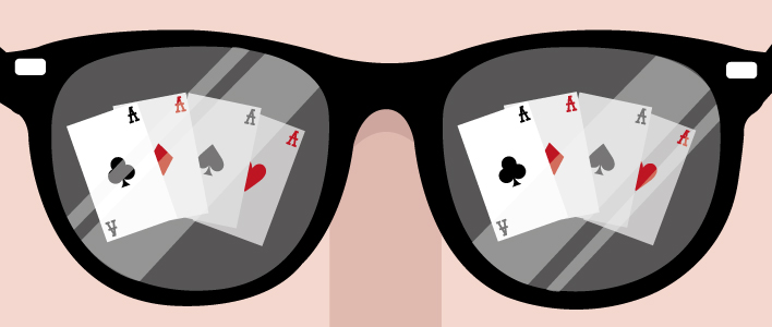 Ahí va otro de los mitos por excelencia. Si revisas fotografías y vídeos de poker anteriores a 2003, encontrarás que muy pocos jugadores usaban gafas de sol en las mesas. Ahora haz la misma búsqueda, pero con material gráfico de 2003 en adelante; ¿Verdad que cuesta encontrar fotos con menos de dos o tres jugadores por mesa con gafas de sol? Según este mito llevar gafas con cristales oscuros oculta nuestros tells físicos a la vista de nuestros rivales, pero la realidad es que ésa no es su verdadera utilidad.